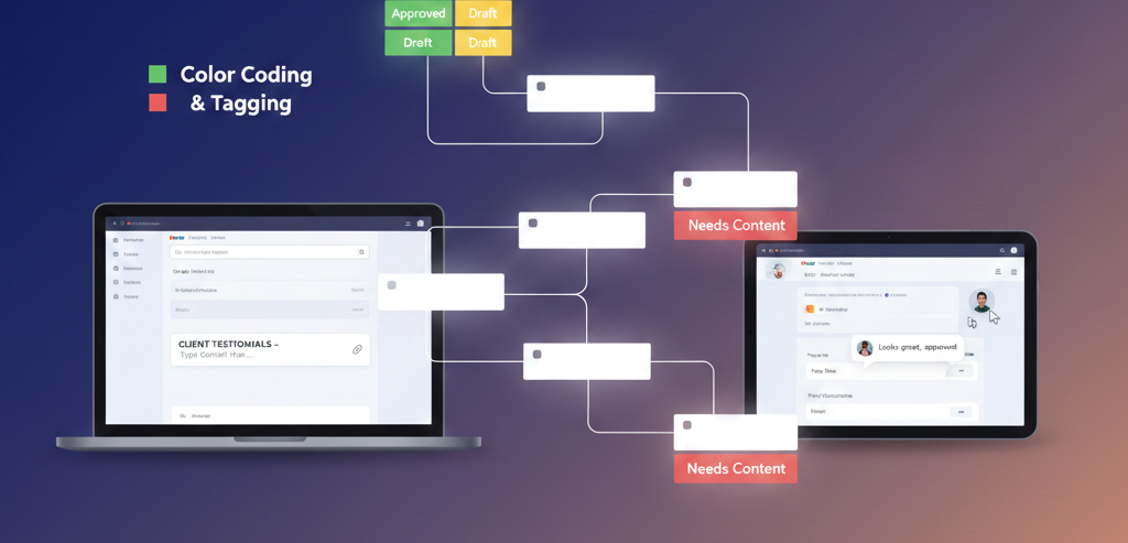 We have all been there. The design is signed off, the site is built, but the project stalls for three months because the client hasn’t provided the copy. WriteMaps solves this with a Live Content Gathering Tool. Instead of waiting for a messy folder of Word docs, your clients can click directly into the sitemap and attach images or type content into specific pages. This keeps client onboarding for web design streamlined and ensures content is a priority from day one.